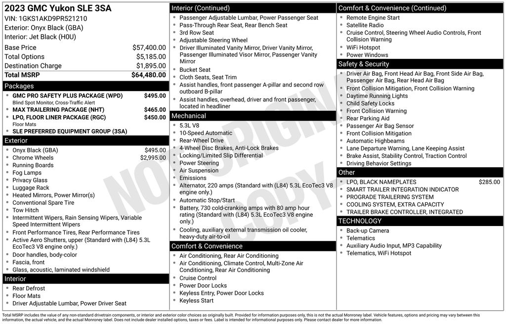Recent Arrival! CARFAX One-Owner. Clean CARFAX. Odometer is 18371 miles below market average! 2023 GMC Yukon SLE in Onyx Black vehicle highlights include, **CLEAN CARFAX**, **ONE OWNER**, **ALLOY WHEELS**, **KEYLESS ENTRY**, **MULTI-ZONE CLIMATE CONTROL**, **BACK UP CAMERA**, **POWER SEATS**, *PREMIUM SOUND SYSTEM**, **MANY MORE OPTIONS**. Onyx Black 2023 GMC Yukon SLE