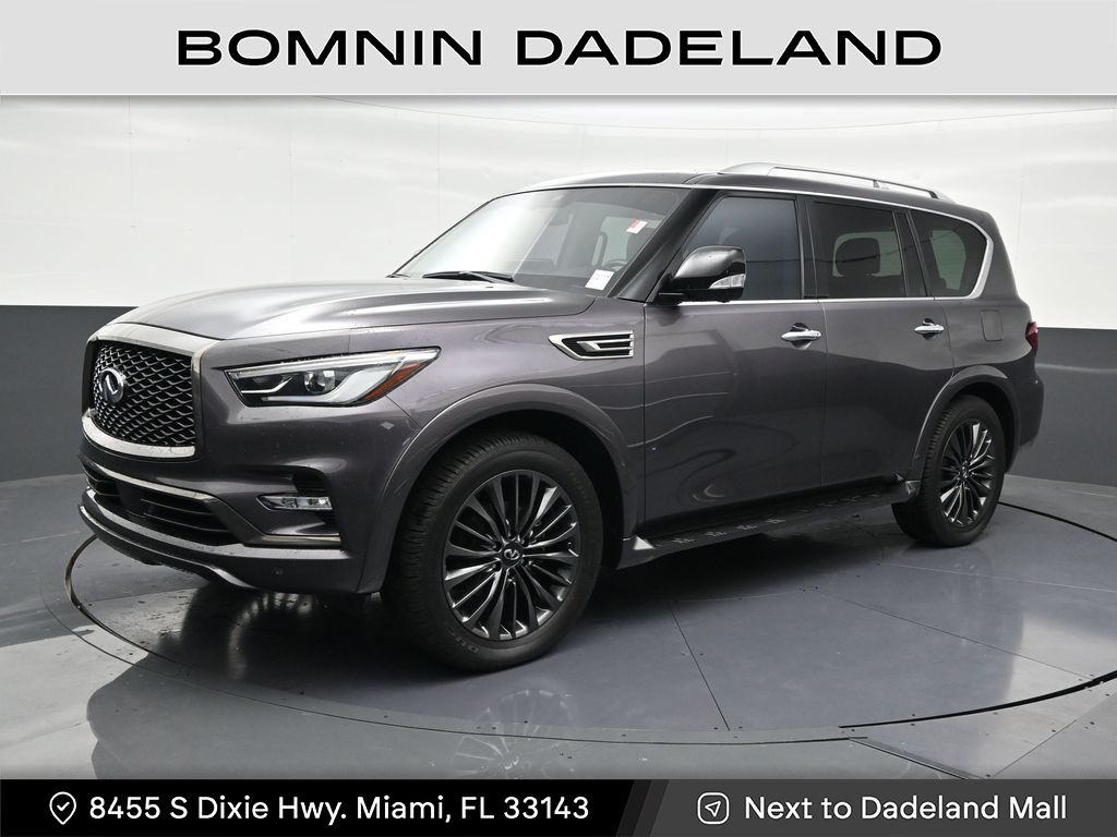 CARFAX One-Owner. Clean CARFAX. Priced below KBB Fair Purchase Price! 2023 INFINITI QX80 Premium Select in Anthracite Gray vehicle highlights include, **CLEAN CARFAX**, **ONE OWNER**, **ALLOY WHEELS**, **LEATHER**, **KEYLESS ENTRY**, **MULTI-ZONE CLIMATE CONTROL**, **REAR A/C**, **BACK UP CAMERA**, **POWER SEATS**, ** MULTI FUNCTION STEERING WHEELS**, **20" WHEELS**, *PREMIUM SOUND SYSTEM**, **REAR PARKING AID**, **KEYLESS START**, **MANY MORE OPTIONS**. Anthracite Gray 2023 INFINITI QX80 Premium Select