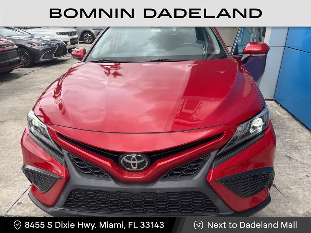 Recent Arrival! CARFAX One-Owner. Clean CARFAX. Odometer is 9598 miles below market average! 2023 Toyota Camry SE in Red vehicle highlights include, **CLEAN CARFAX**, **ONE OWNER**, **STILL UNDER FACTORY WARRANTY**, **ALLOY WHEELS**, **KEYLESS ENTRY**, **BACK UP CAMERA**, ** MULTI FUNCTION STEERING WHEELS**, *PREMIUM SOUND SYSTEM**, **MANY MORE OPTIONS**, Black Artificial Leather. Red 2023 Toyota Camry SE