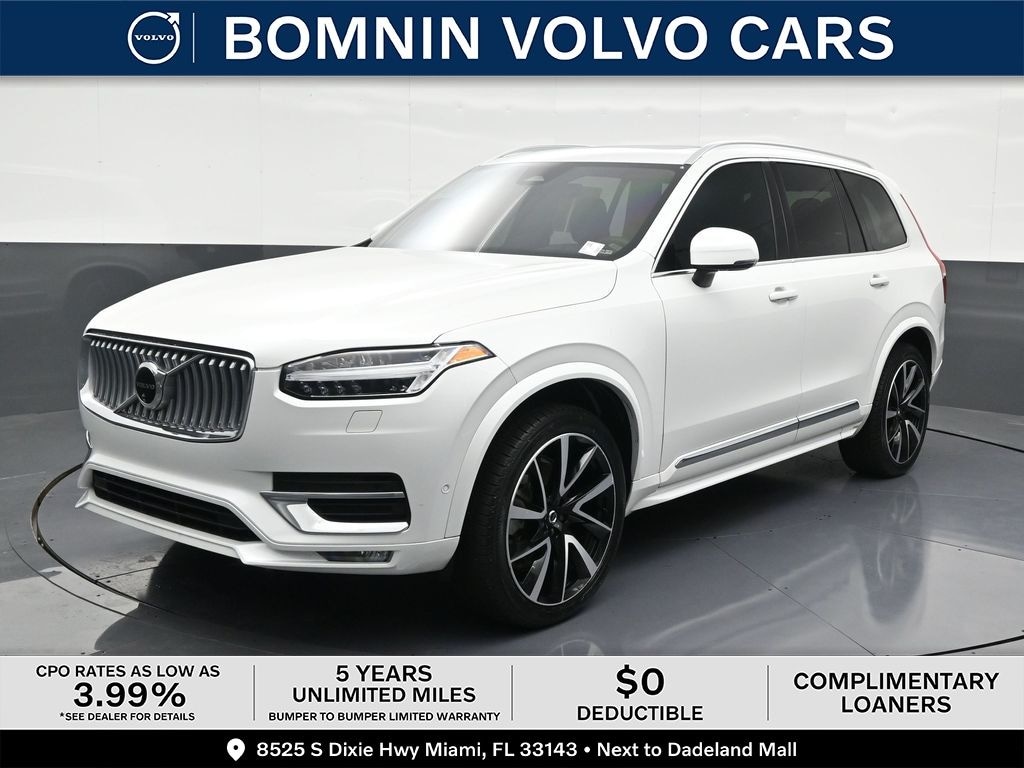 CARFAX One-Owner. 2024 Volvo XC90 B5 Plus in Crystal White Metallic vehicle highlights include, **CLEAN CARFAX**, **ONE OWNER**, **STILL UNDER FACTORY WARRANTY**, **ALLOY WHEELS**, **LEATHER**, **KEYLESS ENTRY**, **VOLVO CERTIFIED PRE-OWNED**, **BACK UP CAMERA**, *PREMIUM SOUND SYSTEM**, **REAR PARKING AID**, **MANY MORE OPTIONS**, AWD, Charcoal w/Leather Upholstery. Certified. Crystal White Metallic 2024 Volvo XC90 B5 Plus