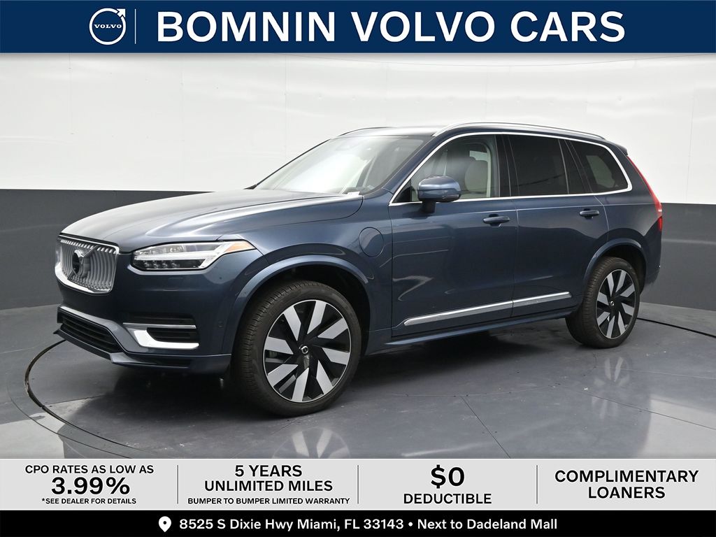 Priced below KBB Fair Purchase Price! 2025 Volvo XC90 Plug-In Hybrid T8 Ultra in Denim Blue Metallic vehicle highlights include, **STILL UNDER FACTORY WARRANTY**, **ALLOY WHEELS**, **LEATHER**, **KEYLESS ENTRY**, **MULTI-ZONE CLIMATE CONTROL**, **VOLVO CERTIFIED PRE-OWNED**, **BACK UP CAMERA**, ** MULTI FUNCTION STEERING WHEELS**, *PREMIUM SOUND SYSTEM**, **MUCH MORE**, 2.0L I4 Hybrid Turbocharged DOHC 16V LEV3-SULEV30. Certified. Denim Blue Metallic 2025 Volvo XC90 Plug-In Hybrid T8 Ultra 6 Passenger